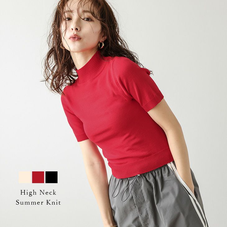 サマーニット ハイネック 半袖 シンプル レイヤード [AMELY by La-gemme]サマーニット ハイネック 半袖 シンプル レイヤード カジュアル キレイめ レディース おすすめ おしゃれ フリーサイズ メール便 2025春夏新作【atpss24-320】【即納:1-5営業日】【送料無料】ユ込2