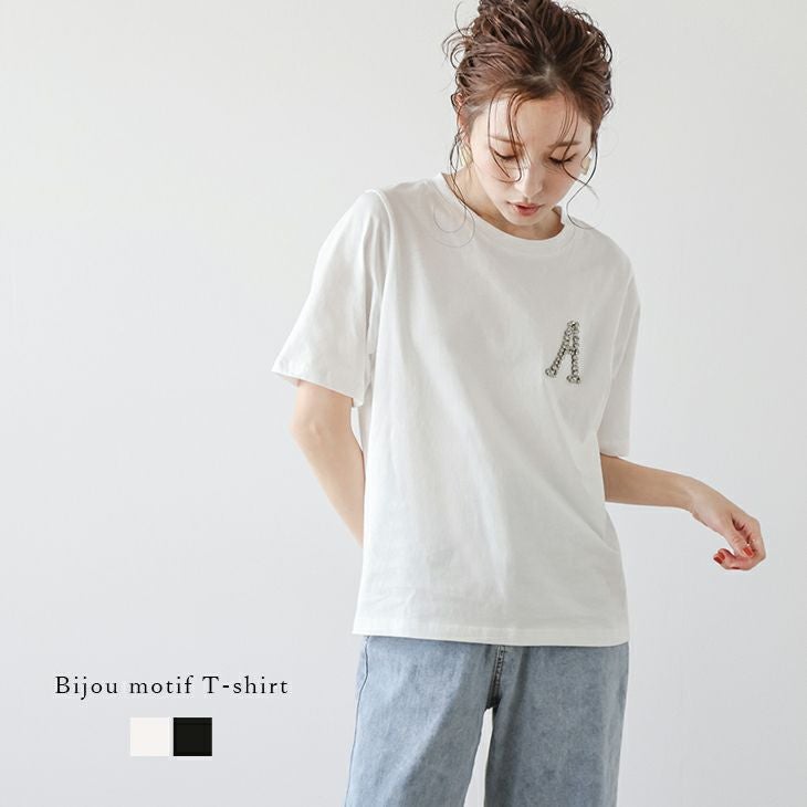 Tシャツ ビジュー 半袖 ラウンドネック トップス [AMELY by La-gemme]Tシャツ ビジュー 半袖 ラウンドネック トップス レディース おすすめ おしゃれ フリーサイズ メール便 2025春夏新作 【atpss24-333】【即納:1-5営業日】【送料無料】ユ込2