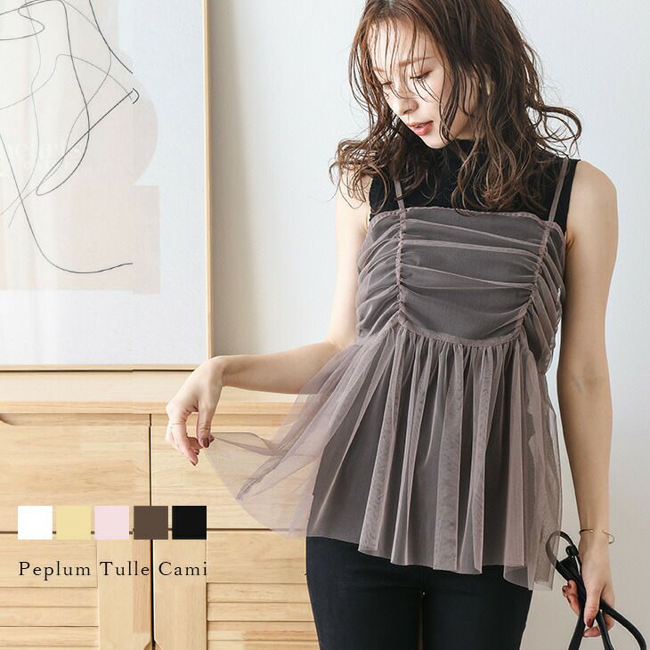 チュール ペプラム キャミ ギャザー ビスチェ 【春夏半額SALE対象】 [AMELY by La-gemme]チュール ペプラム キャミ ギャザー ビスチェ 体型カバー レイヤード 透け感 着映え レディース フリーサイズ 2025春夏新作 【atpss24-360】【即納:1-5営業日】【送料無料】メ込2