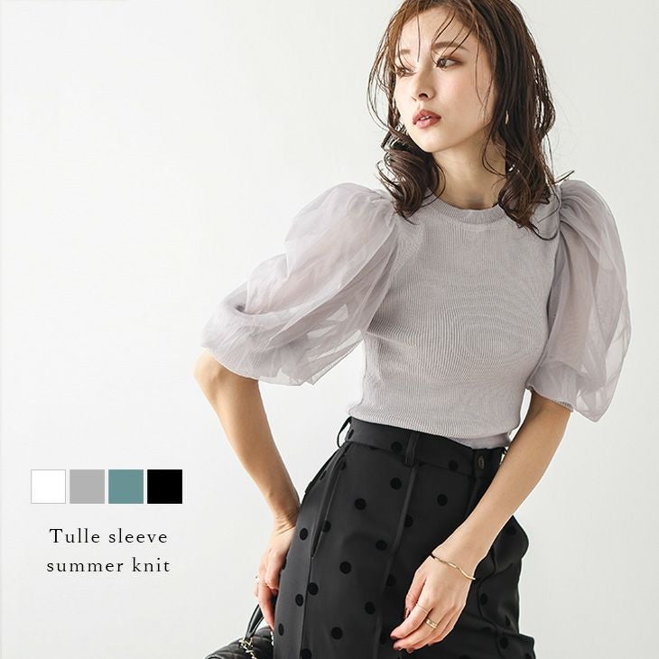 チュール パフスリーブ サマーニット 異素材切替え [AMELY by La-gemme]チュール パフスリーブ サマーニット 異素材切替え ボリューム袖 大人かわいい トップス レディース おすすめ おしゃれ フリーサイズ メール便 2025春夏新作【atpss24-429】【即納:1-5営業日】【送料無料】ユ込3