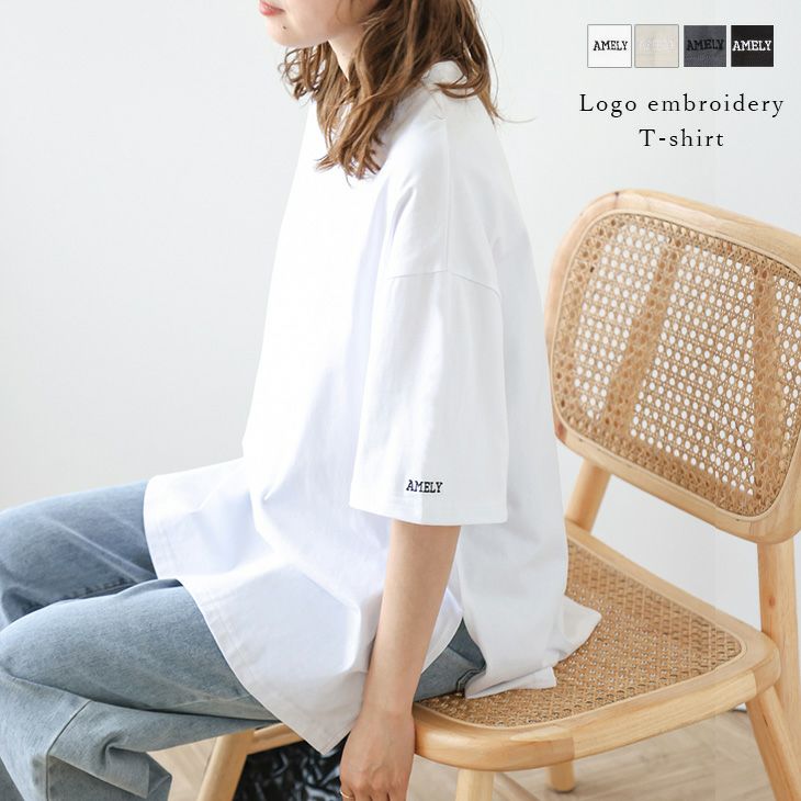 ロゴ刺繍 ワンポイント サイドスリット オーバーサイズ Tシャツ [AMELY by La-gemme]ロゴ刺繍 ワンポイント サイドスリット オーバーサイズ Tシャツ トップス 体型カバー レディース おすすめ おしゃれ 2025春夏新作 【atpss24-497】【即納:1-5営業日】【送料無料】ユ込2