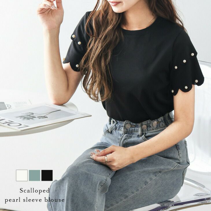 スカラップ パール ティアードスリーブ ブラウス 【春夏半額SALE対象】 [AMELY by La-gemme]スカラップ パール ティアードスリーブ ブラウス Tシャツライク トップス キレイめ 上品 トレンド レディース おすすめ おしゃれ フリーサイズ メール便 2025春夏新作【atpss24-589】【即納:1-5営業日】【送料無料】ユ込2