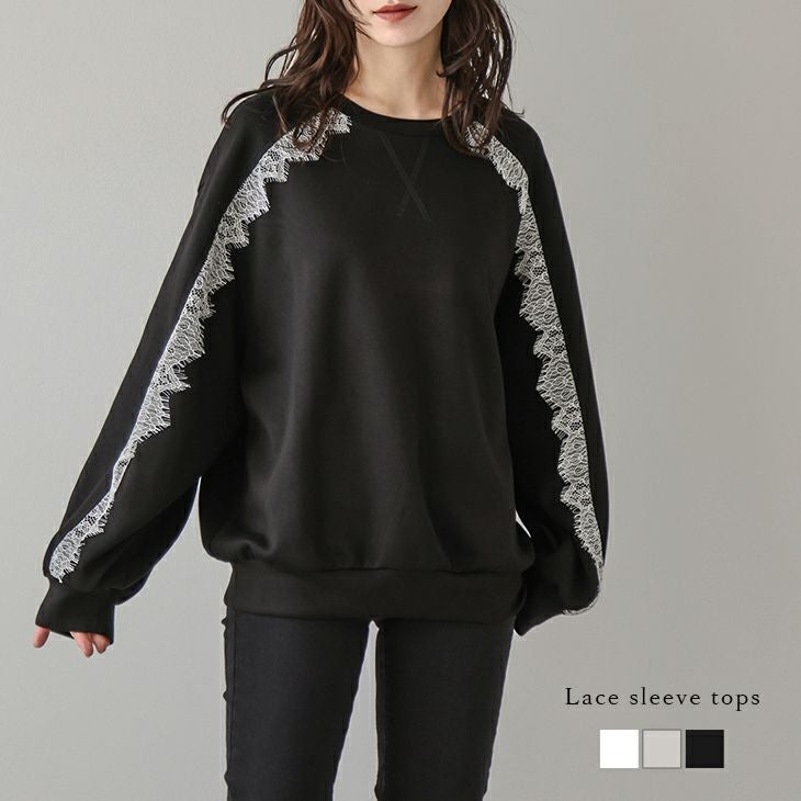 トレーナー プルオーバー トップス 長袖 ぽわん袖 [AMELY by La-gemme]トレーナー プルオーバー トップス 長袖 ぽわん袖 レース ラグランスリーブ ラウンドネック 大人かわいい トレンド レディース おすすめ おしゃれ フリーサイズ 2025春夏新作【atpss24-610】【即納:1-5営業日】【送料無料】80込