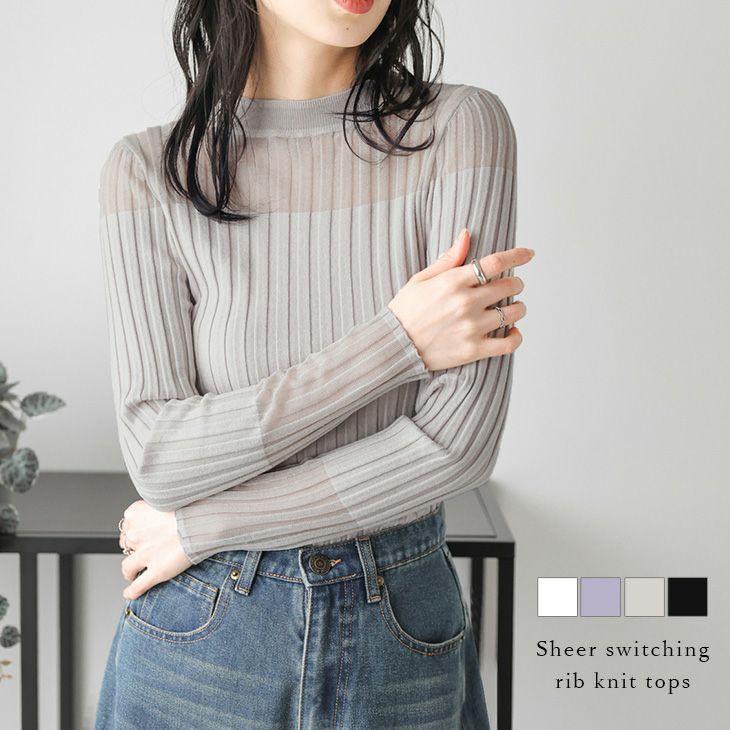 シアー切り替え リブニット トップス 長袖 華奢見せ [AMELY by La-gemme]シアー切り替え リブニット トップス 長袖 華奢見せ ロングシーズン オケージョン キレイめ 大人かわいい レディース おすすめ おしゃれ フリーサイズ メール便 2025春夏新作 【atpss24-889】【即納:1-5営業日】【送料無料】メ込2