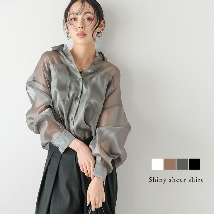 シアーシャツ シャイニー 透け感 ブラウス シフォン [AMELY by La-gemme]シアーシャツ シャイニー 透け感 ブラウス シフォン オーバーシルエット 羽織り トップス レディース おすすめ おしゃれ 2025春夏新作 【atpss24-895】【即納:1-5営業日】【送料無料】ユ込2
