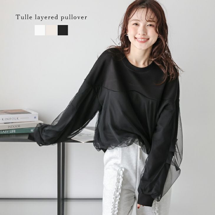 チュール レイヤード プルオーバー ショート丈 【春夏半額SALE対象】 [AMELY by La-gemme]チュール レイヤード プルオーバー ショート丈 クロップド丈 ドッキングトップスキレイめ レディース フリーサイズ メール便 2025春夏新作【atpss25-1032】【即納&予約:4月2日入荷予定順次発送】【送料無料】メ込2
