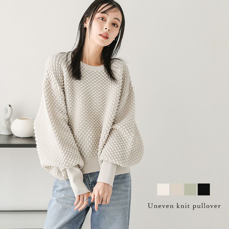 ジャガードニット 凹凸 ポップコーンニット ぽわん袖 【秋冬半額SALE対象】 [AMELY by La-gemme]ジャガードニット 凹凸 ポップコーンニット ぽわん袖 ボリュームスリーブ トップス 大人かわいい レディース おすすめ おしゃれ フリーサイズ 2025春夏新作【atpss25-1036】【即納:1-5営業日】【送料無料】宅込