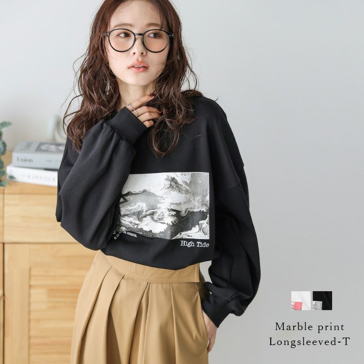トップス ロンT 長袖Tシャツ アートプリント マーブル 【春夏半額SALE対象】 [AMELY by La-gemme]トップス ロンT 長袖Tシャツ アートプリント マーブル 水彩画 コットン混 カジュアル ルーズシルエット トップス レディース おすすめ おしゃれ フリーサイズ 2025春夏新作 【atpss25-1112】【即納:1-5営業日】【送料無料】メ込2