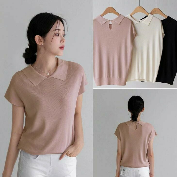 襟付きサマーニット ニットトップス シンプル きれいめ [AMELY by La-gemme]襟付きサマーニット ニットトップス シンプル きれいめ オフィス カジュアル おすすめ レディース オシャレ トレンド 人気 プチプラ 韓国ファッション 【atpss25-1279】【即納:1-5営業日】【送料無料】メ込2