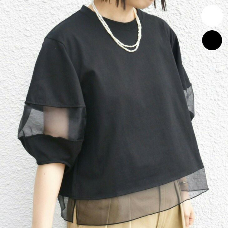 パフスリーブシアーブラウス シアー 透け感 Tシャツ 半袖 [AMELY by La-gemme]パフスリーブシアーブラウス シアー 透け感 Tシャツ 半袖 レイヤード風 カジュアル おすすめ レディース オシャレ トレンド 人気 プチプラ 韓国ファッション 【atpss25-1280】【予約販売:15-20日】【送料無料】メ込2