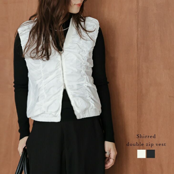 ベスト シャーリング Vネック ギャザー [AMELY by La-gemme]ベスト シャーリング Vネック ギャザー ショート丈 クロップド丈 ダブルジップ MA-1ライク おすすめ おしゃれ フリーサイズ 2025春夏新作 【atpss25-1287】【即納:1-5営業日】【送料無料】メ込2