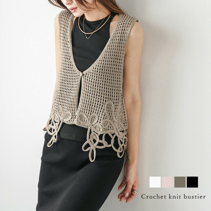 クロシェ かぎ針編み コード刺繍 ビスチェ ベスト [AMELY by La-gemme]クロシェ かぎ針編み コード刺繍 ビスチェ ベスト レイヤード 透かし編み メッシュニット アウター レディース おすすめ おしゃれ 2025春夏新作 【atpss25-1376】【即納:1-5営業日】【送料無料】メ込2