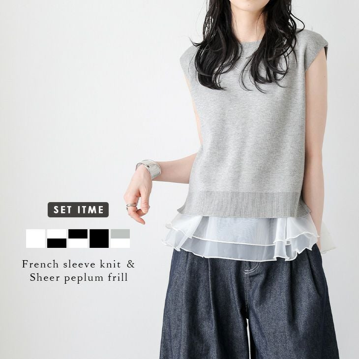 セットアイテム サマーニット フレンチスリーブ シアー [AMELY by La-gemme]セットアイテム サマーニット フレンチスリーブ シアー ペプラム レイヤード 大人かわいい 着回し 着映え レディース おすすめ おしゃれ フリーサイズ メール便 2025春夏新作 【atpss25-1403】【即納:1-5営業日】【送料無料】メ込2