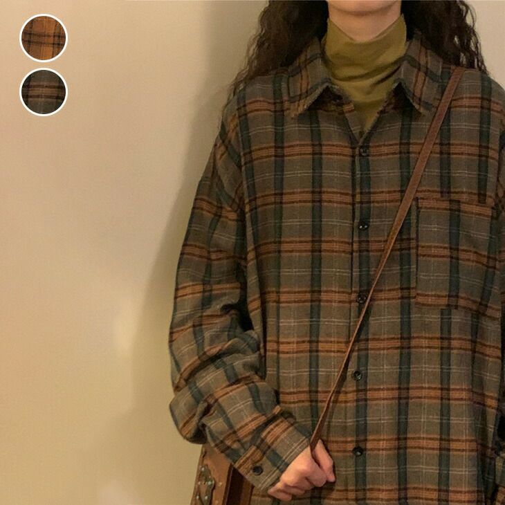 チェックシャツ カジュアル ルーズシャツ オーバーサイズ [AMELY by La-gemme]チェックシャツ カジュアル ルーズシャツ オーバーサイズ チェック 羽織り シャツ ブラウス 長袖 秋冬 おすすめ レディース オシャレ トレンド 人気 プチプラ 韓国ファッション【atpss25-dk02】【予約販売:15-20日】【送料無料】メ込2