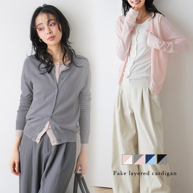 配色 フェイクレイヤード カーディガン 長袖 サマーニット [AMELY by La-gemme]配色 フェイクレイヤード カーディガン 長袖 サマーニット トップス 羽織 コンパクト丈 バイカラー レディース おすすめ おしゃれ 2026春夏新作 【atpss26-1956】【予約販売:3月19日入荷予定順次発送】【送料無料】メ込2
