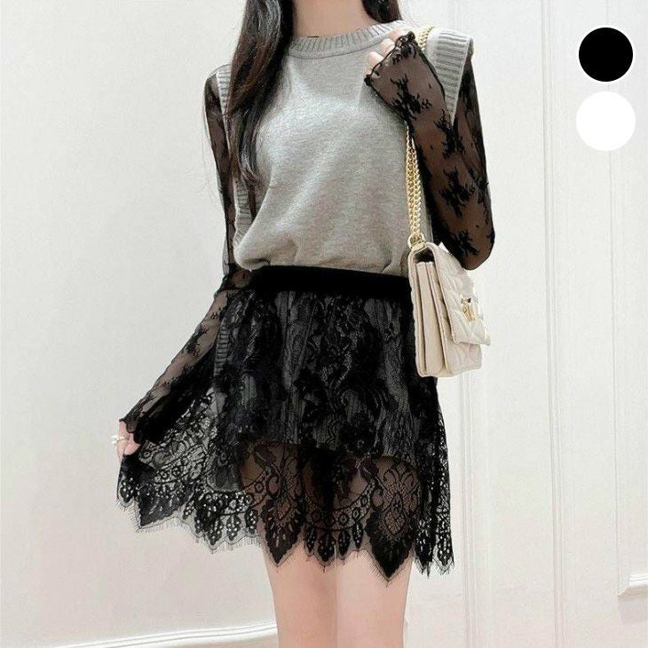 ウエストレース 大人フェミニン つけ裾 チラ見せ 【春夏半額SALE対象】 [AMELY by La-gemme]ウエストレース 大人フェミニン つけ裾 チラ見せ ドッキング レース巻き レイヤード風 腹巻 お洒落 可愛い ウエストゴム 春コーデ 通勤 レディースファッション おしゃれ ナチュラル おすすめ デート 大人 お洒落 上品 【awp26-213】【予約販売:15-20日】【送料無料】メ込2