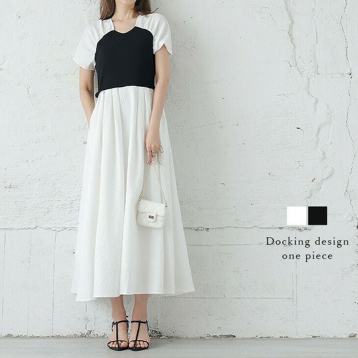 [AMELY by La-gemme]ドッキングデザインワンピース 異素材 リブニット [AMELY by La-gemme]ドッキングデザインワンピース 異素材 リブニット ジャガード 半袖 モード感 ビスチェ レディース 二の腕カバー おすすめ おしゃれ ブラック 2025春夏新作 【awp301-581】【即納:1-5営業日】【送料無料】60込