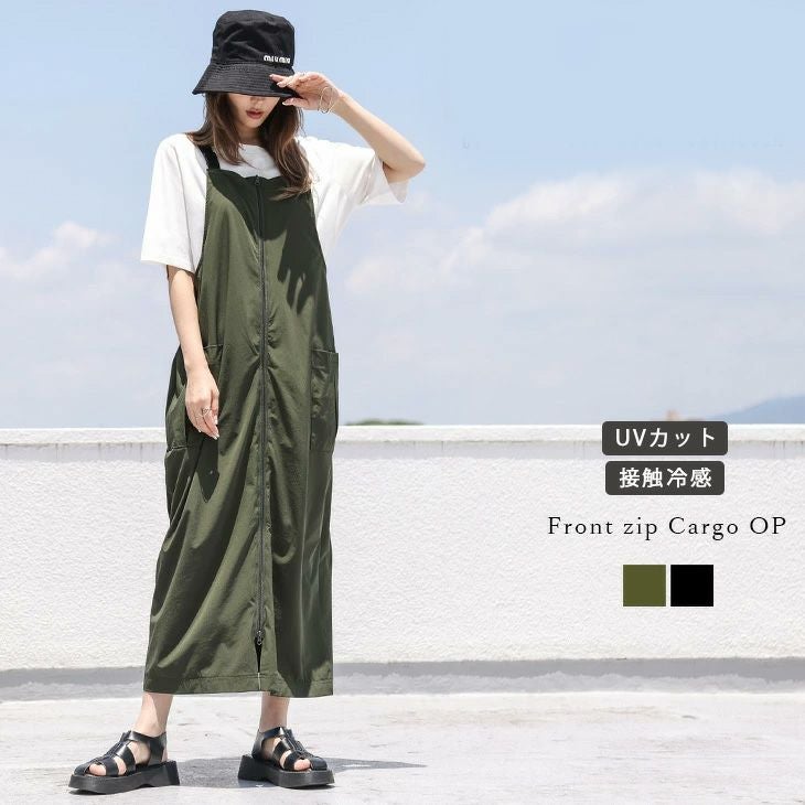 [AMELY by La-gemme]カーゴワンピース フロントジップ ラッシュガード [AMELY by La-gemme]カーゴワンピース フロントジップ ラッシュガード サスペンダー ロング 速乾性 接触冷感 UVカット 海 リゾート フリーサイズ メール便 2025春夏新作 【awp301-583】【即納:1-5営業日】【送料無料】ユ込3