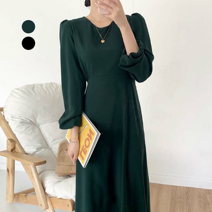 [AMELY by La-gemme]ワンピース パフ袖 ラウンドネック [AMELY by La-gemme]ワンピース パフ袖 ラウンドネック ロングワンピース フレア ミモレ丈 上品 発表会 フォーマル 結婚式 おしゃれ きれいめ ブラック レディース 韓国ファッション 【awp302-007】【予約販売:15-20日】【送料無料】メ込2