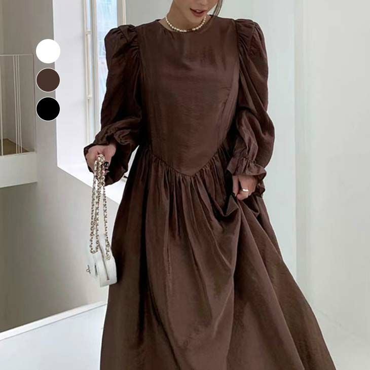 [AMELY by La-gemme]タック入りワンピース ギャザー パワーショルダー [AMELY by La-gemme]タック入りワンピース ギャザー パワーショルダー ワンピ オーバーサイズ ゆったり ドレス 女子会 ママコーデ 【awp302-242】【予約販売:15-20日】【送料無料】メ込2