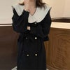 [AMELY by La-gemme]ワンピース 長袖 ロング [AMELY by La-gemme]ワンピース 長袖 ロング おしゃれ かわいい ビッグカラー セーラーカラー 黒 無地 シンプル レトロ ガーリー ウエストマーク カフスボタン ダブルボタン 大人可愛い 細見え 【awp302-247】【予約販売:15-20日】【送料無料】メ込4