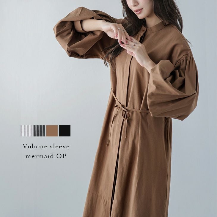 ワンピース ボリュームスリーブ ストライプ フレア [AMELY by La-gemme]ワンピース ボリュームスリーブ ストライプ フレア 長袖 羽織りレディース おすすめ メール便 2025春夏新作 【awp302-581】【即納:1-5営業日】【送料無料】メ込2