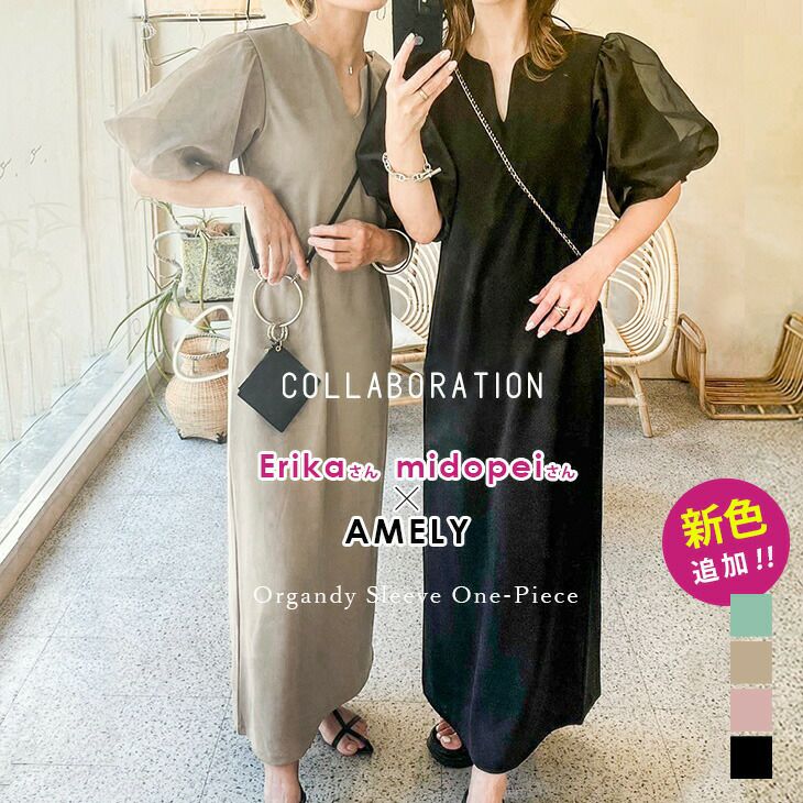 [AMELY by La-gemme]ロングワンピース オーガンジー袖 シアー 【春夏半額SALE対象】 [AMELY by La-gemme]ロングワンピース オーガンジー袖 シアー ボリューム キーネック 高見え 5分袖 レディース 女子会 食事会 UVカット メール便 2025春夏新作 【awp303-386】【即納:1-5営業日】【送料無料】メ込2