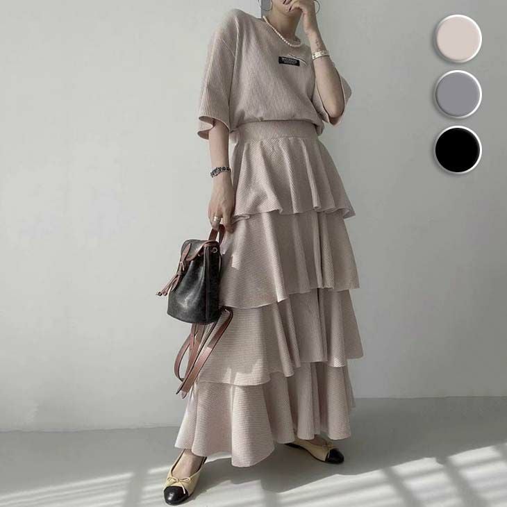 [AMELY by La-gemme]セットアップ ティアードスカート ロング [AMELY by La-gemme]セットアップ ティアードスカート ロング 半袖 長袖 可愛い ガーリー 細見え お出かけ デート 通勤 レディース おしゃれ おすすめ 人気 トレンド プチプラ 韓国ファッション 【awp304-039】【予約販売:15-20日】【送料無料】メ込4