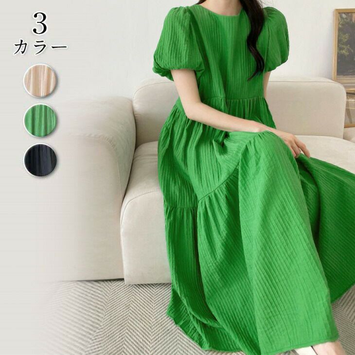 [AMELY by La-gemme]ティアードワンピース パフスリーブ 半袖 [AMELY by La-gemme]ティアードワンピース パフスリーブ 半袖 ラウンドネック 可愛い ガーリー ゆったり 楽ちん レディース おしゃれ おすすめ 春 夏 人気 トレンド プチプラ 韓国ファッション 【awp304-043】【即納:1-5営業日】【送料無料】メ込4