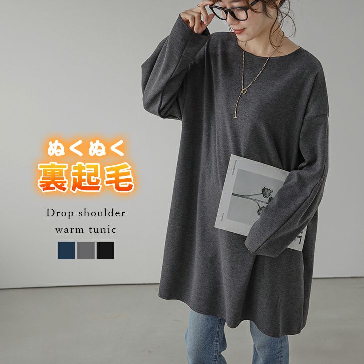 裏起毛 チュニック ドロップショルダー シンプル ベーシック 【秋冬半額SALE対象】 [AMELY by La-gemme]裏起毛 チュニック ドロップショルダー シンプル ベーシック トップス 長袖 レディース おすすめ おしゃれ フリーサイズ メール便 2025春夏新作 【awp308-50a】【即納:1-5営業日】【送料無料】メ込4