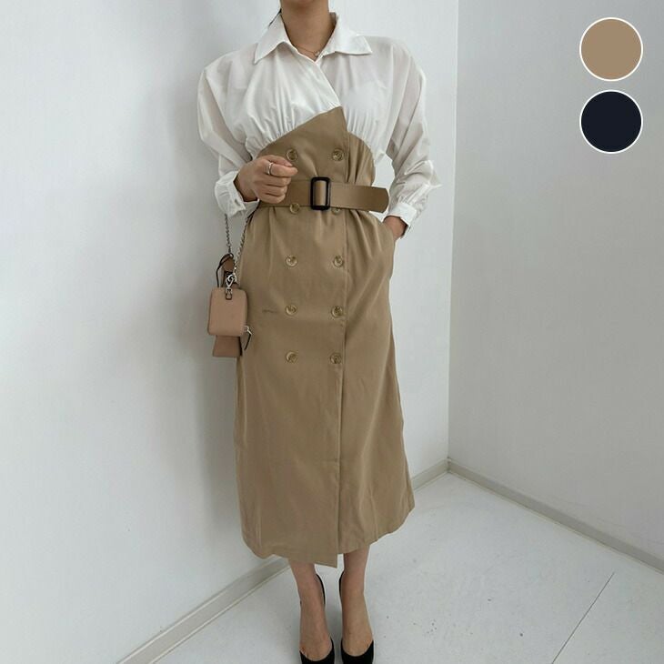 異素材 ワンピース レイヤード風 切り替え ギャザー [AMELY by La-gemme]異素材 ワンピース レイヤード風 切り替え ギャザー ウエストマーク ミドル丈 ワンピース 女子会 きれいめ カジュアルオシャレ トレンド 人気 プチプラ 韓国ファッション【awp401-143】【予約販売:15-20日】【送料無料】60込