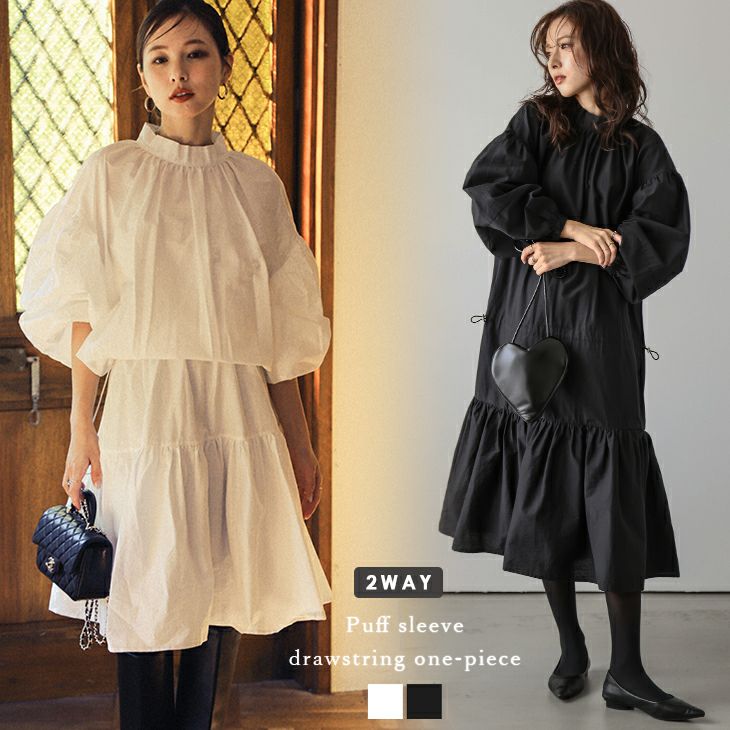 ワンピース ドローコード ドロスト ぽわん袖 フレア 【春夏半額SALE対象】 [AMELY by La-gemme]ワンピース ドローコード ドロスト ぽわん袖 フレア 長袖 ドロップショルダー 大人かわいい トレンド レディース おすすめ おしゃれ フリーサイズ メール便 2025春夏新作【awpaw24-671】【即納:1-5営業日】【送料無料】メ込2