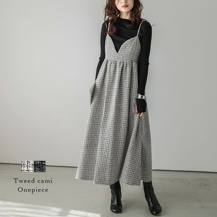 キャミワンピ フレア ロング ミディアム ツイード調 【秋冬半額SALE対象】 [AMELY by La-gemme]キャミワンピ フレア ロング ミディアム ツイード調 ワンピース キレイめ 大人可愛い トレンド デート 旅行 レディース おすすめ おしゃれ 2025春夏新作【awpaw24-832】【即納:1-5営業日】【送料無料】宅込