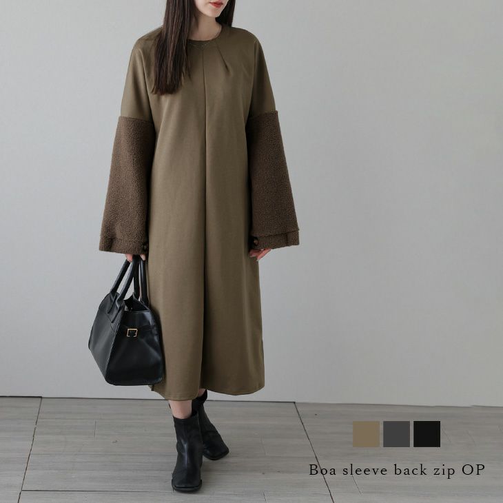 ボアスリーブ バックジップ ワンピース 長袖 ロング丈 [AMELY by La-gemme]ボアスリーブ バックジップ ワンピース 長袖 ロング丈 ダンボールニット 異素材 Aライン サイドスリット 体型カバー ミディアム ワンピース 長袖 レディース おすすめ おしゃれ 2025秋冬新作【awpaw25-1503】【予約販売:10月30日入荷予定順次発送】【送料無料】宅込