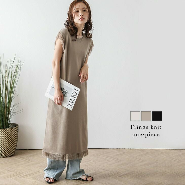 ワンピース フリンジ Iラインシルエット ニット 大人 [AMELY by La-gemme]ワンピース フリンジ Iラインシルエット ニット 大人 カジュアル 半袖 レディース おすすめ おしゃれ フリーサイズ メール便 2025春夏新作 【awpss24-514】【即納:1-5営業日】【送料無料】メ込2