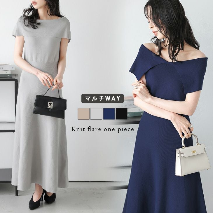 マルチWay ニット フレア ワンピース ボートネック [AMELY by La-gemme]マルチWay ニット フレア ワンピース ボートネック オフショル ビッグカラー 半袖 レディース おすすめ おしゃれ フリーサイズ 2025春夏新作 【awpss25-1131】【即納:1-5営業日】【送料無料】宅込