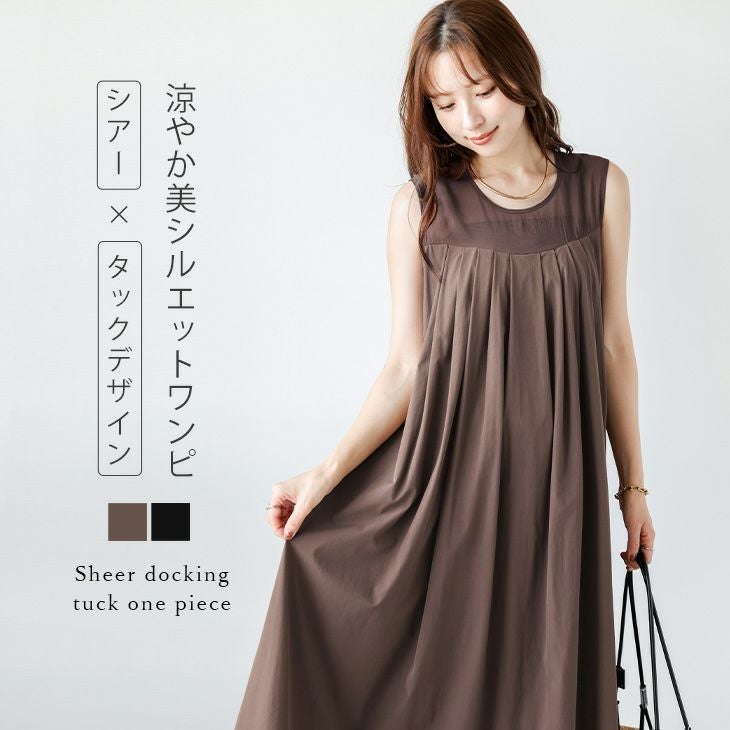 ワンピース ノースリーブ シアー タック プリーツ 【春夏半額SALE対象】 [AMELY by La-gemme]ワンピース ノースリーブ シアー タック プリーツ 美シルエット Aライン 上品 体型カバー キレイめ レディース おすすめ おしゃれ フリーサイズ メール便 2025春夏新作【awpss25-1439】【即納:1-5営業日】【送料無料】メ込2