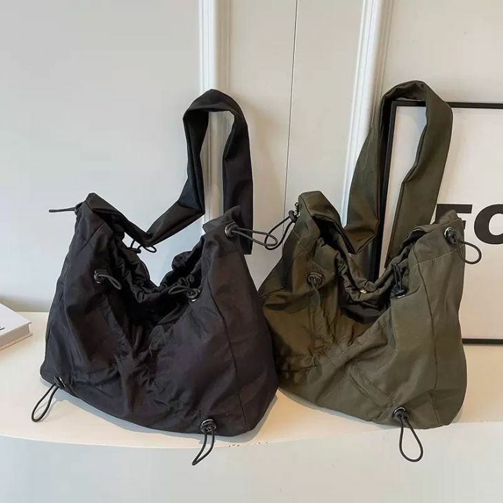 ショルダーバッグ ナイロン ドロスト ドローストリング 巾着 [AMELY by La-gemme]ショルダーバッグ ナイロン ドロスト ドローストリング 巾着 軽量 大容量 斜め掛け レディース 通勤 通学 トレンド 人気 プチプラ 韓国ファッション 【azkss24-200】【予約販売:15-20日】【送料無料】80込