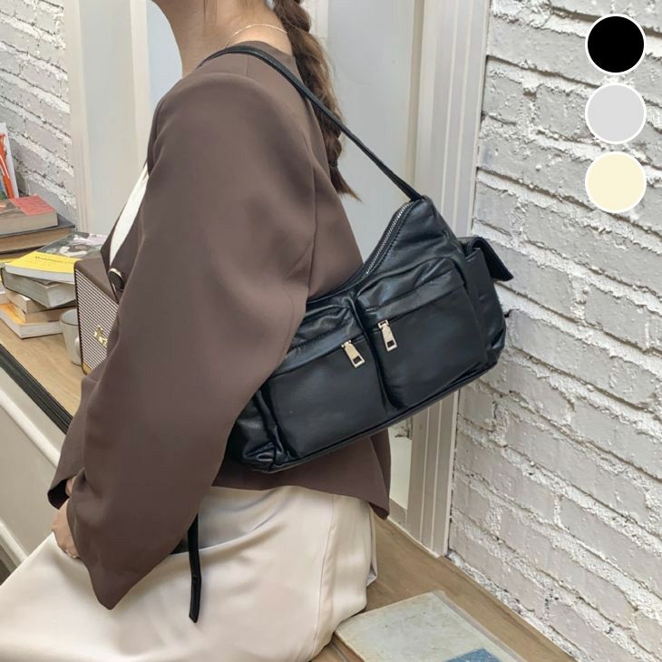 レザー風 ショルダーバッグ フェイクレザー 三日月 横長 [AMELY by La-gemme]レザー風 ショルダーバッグ フェイクレザー 三日月 横長 バッグ 肩掛け ショルダー カジュアル シンプルおすすめ レディース オシャレ トレンド 人気 プチプラ 韓国ファッション 【akb406-667】【予約販売:15-20日】【送料無料】宅込
