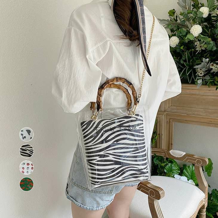 バンブーハンドルクリアバッグ 布ポーチ付き チェーン ハンド バンブーハンドルクリアバッグ 布ポーチ付き 柄ポーチ チェーン ハンドバッグ バッグ 【bnn-3337】【予約販売:15-20日】【送料無料】宅込