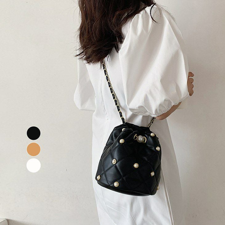 巾着デザインショルダーバッグ パール 巾着バッグ トレンド 巾着デザインショルダーバッグ パール ショルダーバッグ 巾着バッグ トレンド ミニバッグ バッグ 韓国服【bnn-720】【予約販売:15-20日】【送料無料】宅込