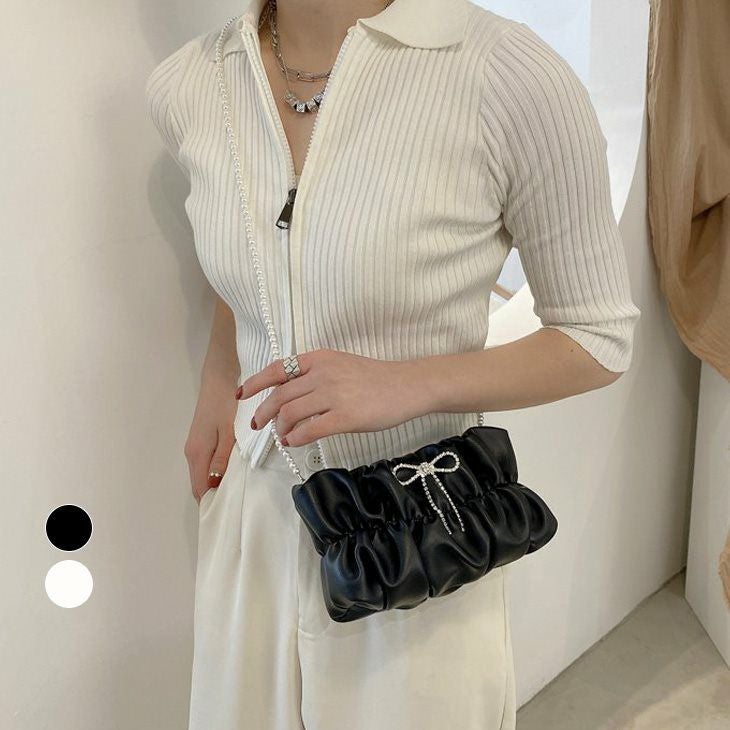 ギャザークラッチショルダーバッグ パールストラップ トレンド ギャザークラッチショルダーバッグ パールストラップ クラッチバッグ トレンド パーティバッグ【bnn-9901】【予約販売:15-20日】【送料無料】宅込
