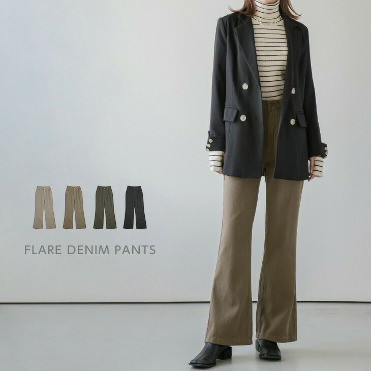 ボトムス パンツ デニム ハイウエスト セミフレア