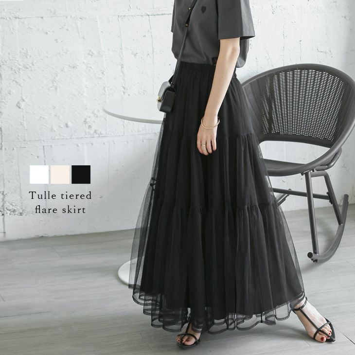 スカート チュール ティアード フェミニン フレア 【春夏半額SALE対象】 [AMELY by La-gemme]スカート チュール ティアード フェミニン フレアシルエット 大人かわいい トレンド ロング丈 レディース フリーサイズ メール便 2025春夏新作【askss24-345】【即納:1-5営業日】【送料無料】メ込3