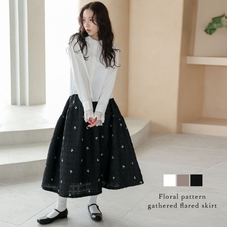 スカート フレア ギャザー 小花柄 刺繍 【春夏半額SALE対象】 [AMELY by La-gemme]スカート フレア ギャザー 小花柄 刺繍 ジャガード フェミニン カジュアル 着映え レディース フリーサイズ メール便 2026春夏新作【askss26-1905】【予約販売:4月2日入荷予定順次発送】【送料無料】メ込2