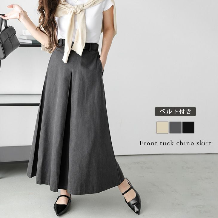 ベルト付き フロントタック チノスカート フレア 体型カバー ベルト付き フロントタック チノスカート フレア 体型カバー ロング丈 ボトムス レディース おすすめ おしゃれ 2025春夏新作 【lsbts25-1199】【予約販売:15-20日】【送料無料】メ込2