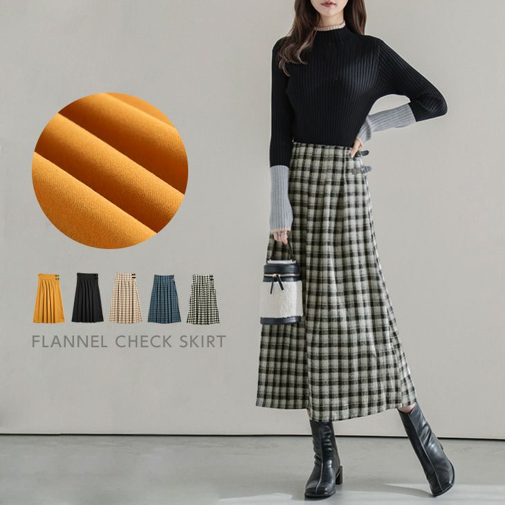 ロングスカート フランネル生地 チェック柄 無地柄 フレア ロングスカート フランネル生地 チェック柄 無地柄 フレア ロング丈 ボトムス レディース おすすめ おしゃれ ブラック メール便 2025秋新作 【lssk210-432】【即納:1-5営業日】【送料無料】メ込2