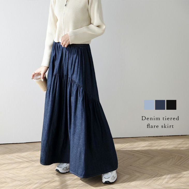 デニムスカート フレア ティアード ギャザー 可愛い 【春夏半額SALE対象】 デニムスカート フレア ティアード ギャザー 大人可愛い カジュアル フェミニン シンプル ベーシック こなれ感 体型カバー ボトムス レディース おすすめ おしゃれ 2026春夏新作【lssk301-430】【即納:1-5営業日】【送料無料】60込