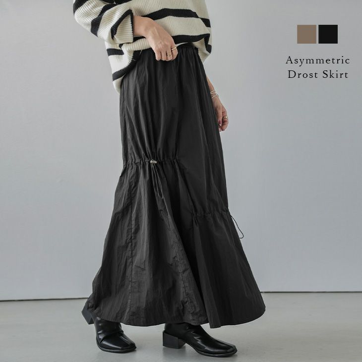 ドロストスカート アシンメトリー ティアード フレア ドロストスカート アシンメトリー ティアード フレア ロングスカート ボトムス レディース 体型カバー おすすめ おしゃれ ブラック 2025春夏新作 【lszk303-938】【即納:1-5営業日】【送料無料】ユ込3