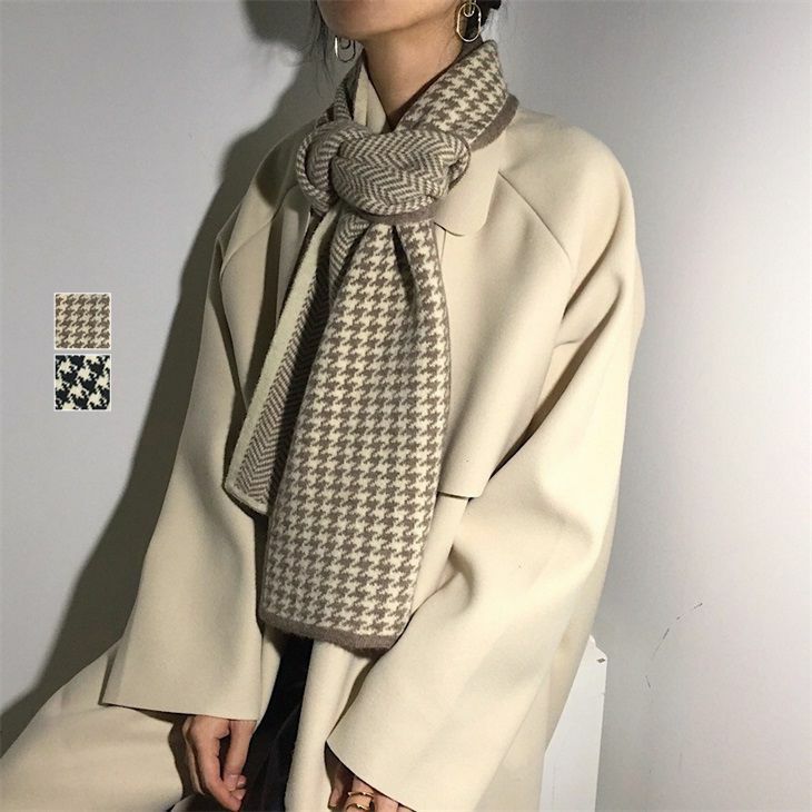 レトロ 千鳥格子 ニット マフラー リバーシブル レトロ 千鳥格子 ニット マフラー リバーシブル デザイン 防寒 ふんわり 柔らかい レイヤード シンプル お洒落 きれいめ オフィス カジュアル ガーリー レディース 春夏 ギフト プレゼント 韓国ファッション【wwj-02】【予約販売:15-20日】【送料無料】メ込4